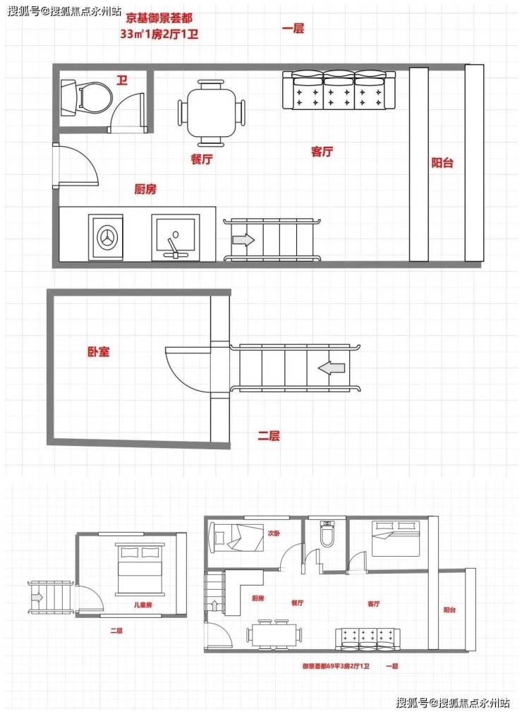 约33-75平、户户带阳台、阳台通燃气的真公寓,层高达到了约3.6米。