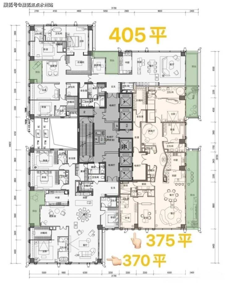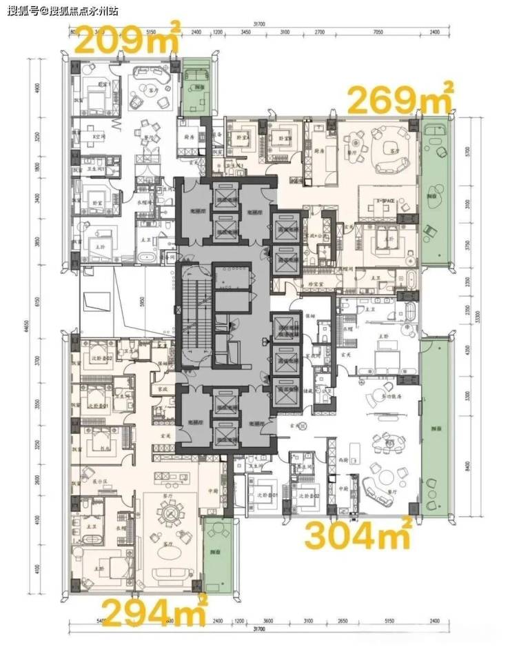 户型:面积约209㎡-270㎡--300㎡-400㎡-500㎡-700㎡-1050㎡,的大平层豪宅。