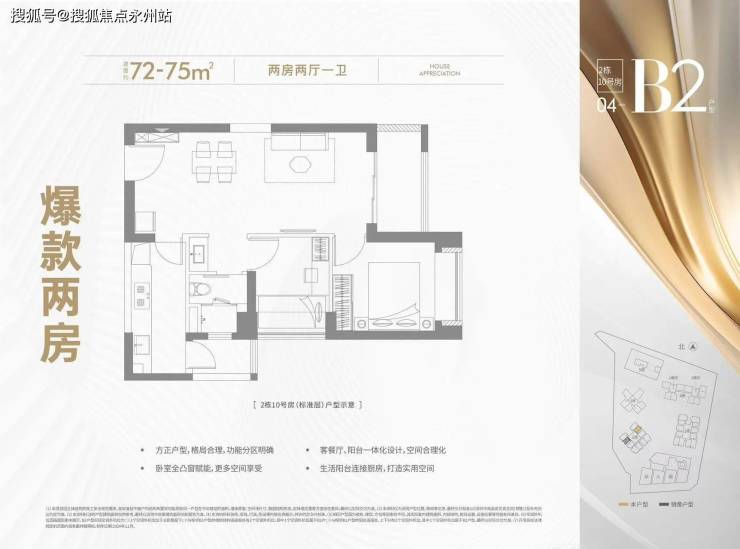 本次加推的户型方面:总共有4个户型面积,其中72-75平2房2厅1卫的户型,预计价格280-300万内,这个户型应该是关注度最高的,因为总价低适合刚需入手。