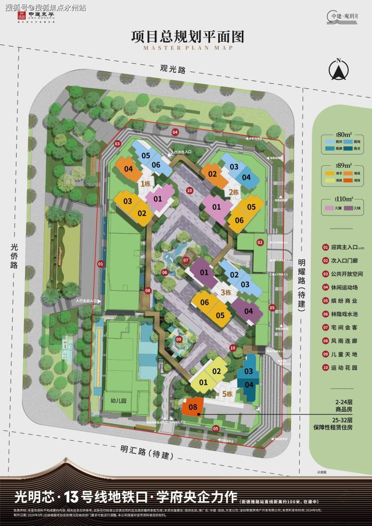 光明凤凰城「中建-观玥名邸」推出719套房源,建面约80-89-110㎡3-4房。