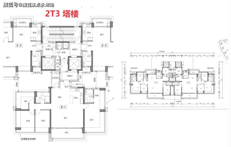 塔楼小户型(26层塔楼,2梯6户)83-90㎡三房两厅两卫:科学规划,空间利用率高,得房率约95%以上。
