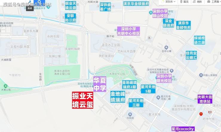 旁边是华夏中学跟华南师范大学附属光明星河小学,东周学校,周边也分布有多所学校,包括有南方科技大学附属光明学校、深圳小学、四大名校之一的深圳外国语楼村分校等多所市属名校分校。
