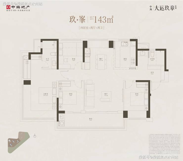143㎡湖景四房:单价5.2万-5.85万/㎡,总价744万-840万,客厅及主卧直面大运湖景,豪装标准达东部标杆。