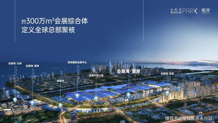 会展湾·南岸广场(又称会展湾云岸广场)位于深圳宝安区会展新城核心板块,依托全球最大深圳国际会展中心的产业红利,打造集公寓、甲级写字楼、商业、酒店于一体的全能综合体项目。