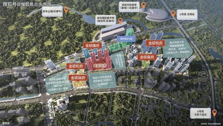 满京华·金硕和府位于科学公园核心C位住宅区,北侧毗邻光明科学公园(在建)、深圳国际美术馆(在建),距离6号线光明站步行约800米。,总规划分为7期,综合体量近百万平,备案指导价47300。