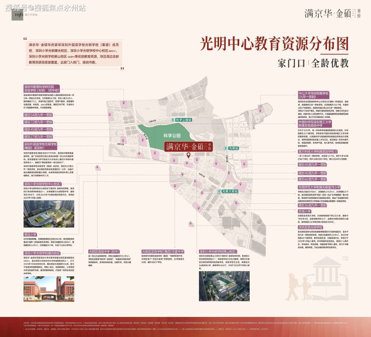 满京华金硕,由满京华集团开发,位于光明区光明中心区光辉大道与狮山三街交汇处,项目所在区域是光明规划最宜居,居住小区板块最大的片区,北侧靠近科学公园,东侧及南侧是深圳小学光明学校狮山校区及初中校区,距离最近的6号地铁线“光明站”约800米。Vip Tel:400-992-0669 中介勿扰