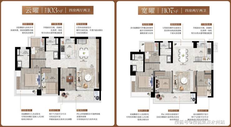 103-107㎡成长四房:双跨阳台设计,主卧270°环景飘窗,三代同堂的从容与私密兼得。