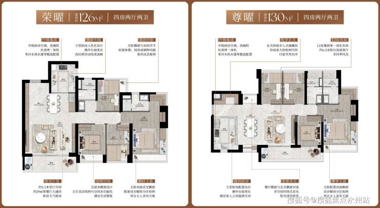 126-130㎡奢境四房:端户采光王炸,全南向布局+超尺度面宽,演绎奢适生活场域。