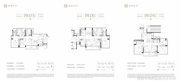 112-113㎡ 4房2卫:主力改善款。提供横厅与竖厅多种布局,餐客厅一体化设计,五开间朝南。大阳台连接客厅与次卧,空间尺度感极佳。折后总价约773万-934万。