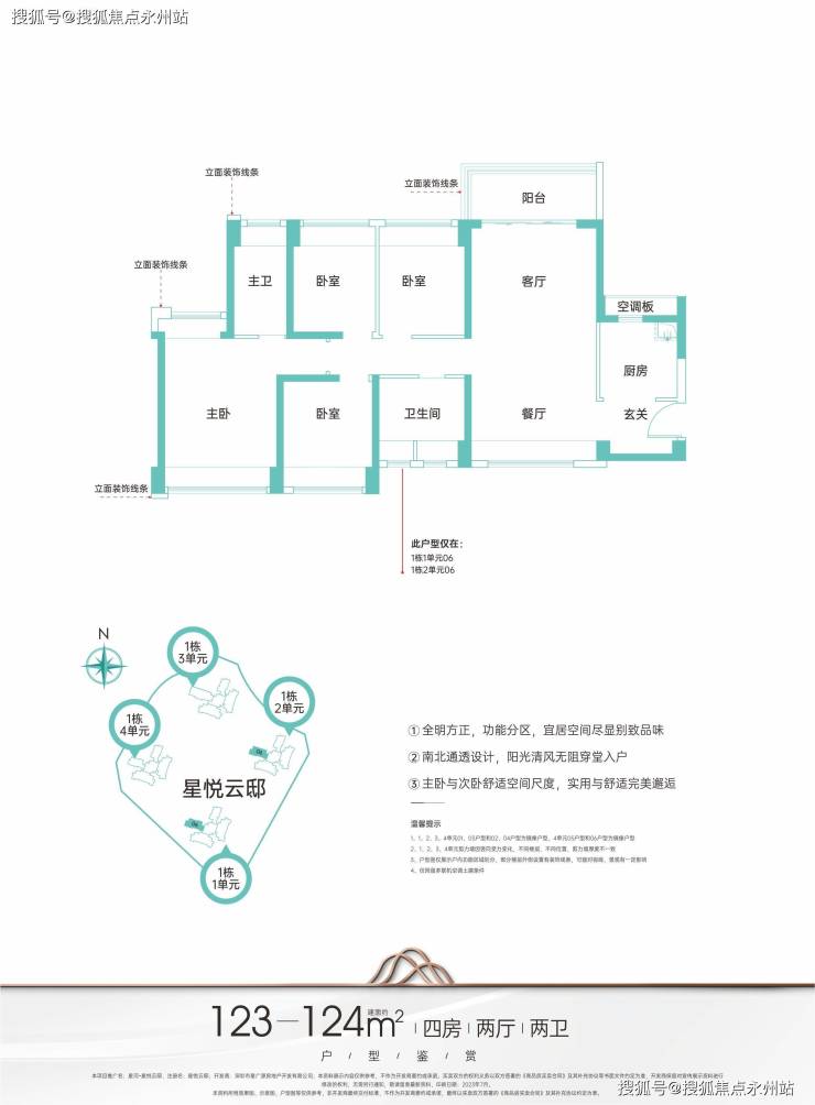 主力户型建面约95-124㎡臻品三至四房,启悦城市美好未来