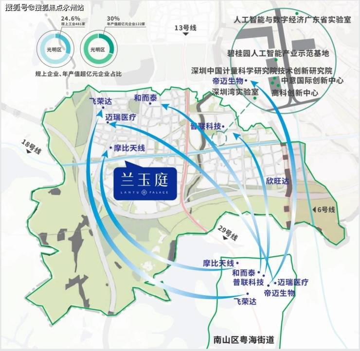玉塘街道连续5年蝉联光明区GDP总量第一,2021年GDP达351.9亿元,定位为深圳先进制造业新高地和湾区科研经济主阵地。区域内集聚了迈瑞医疗、深圳湾实验室、腾讯等龙头企业,形成高端医疗器械、人工智能、超高清视频显示等产业集群,并计划引入低空经济示范项目,进一步强化产业竞争力。星辉兰玉庭开发商售楼处_Vip Tel:400-992-0669,中介勿扰