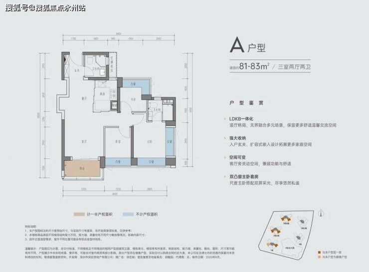 A户型 | 建面约81-83㎡三室两厅两卫