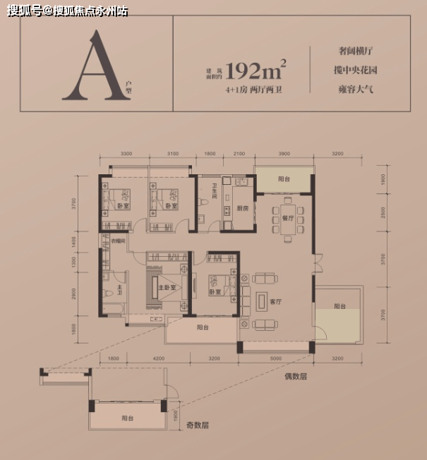 在售户型:192—243㎡4+1房(大平层)︱188-235-634㎡(叠墅)