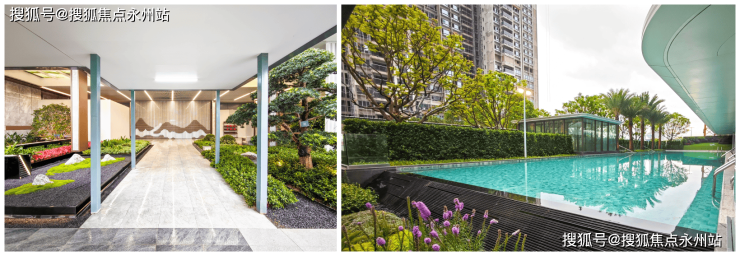 特色归家景观连廊,营造“四合院”式庭院归家礼仪;园区配置子母双泳池,演绎四季律动的生活场景。