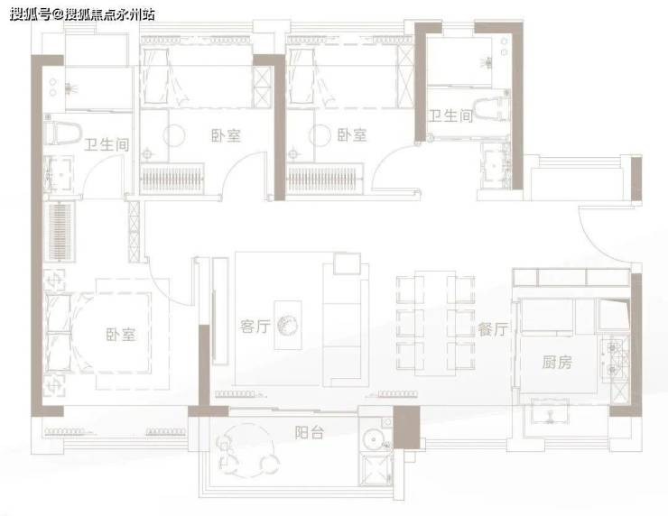 全屋通透三房三面采光,明厨明卫,L型厨房,多元功能合理配置三卧室均带飘窗,空间利用率高。
