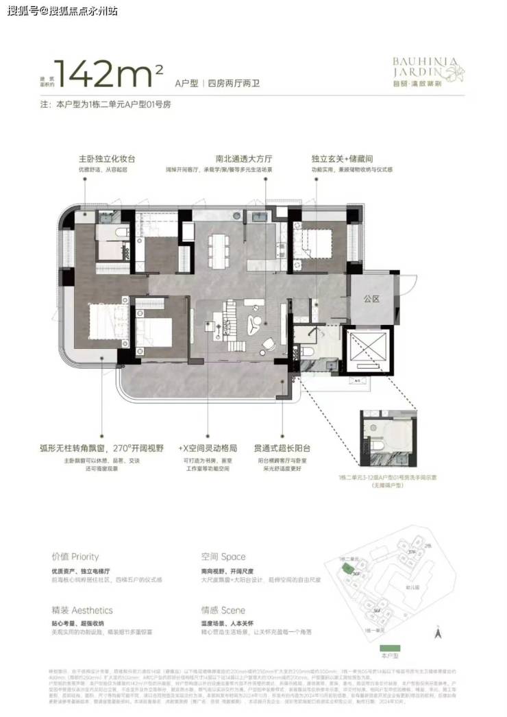 户型采用建筑新规设计,推出建面约96-142㎡三至四房户型。