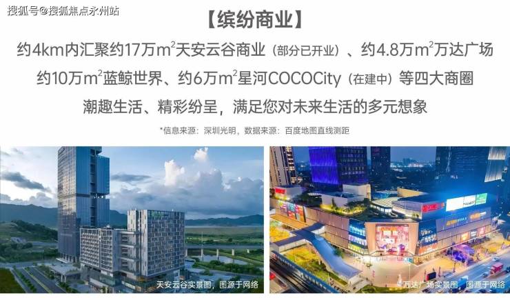 光明中心区商圈:4公里范围内覆盖万达广场(4.5万㎡)、蓝鲸世界(13万㎡)等,形成超30万㎡商业集群。