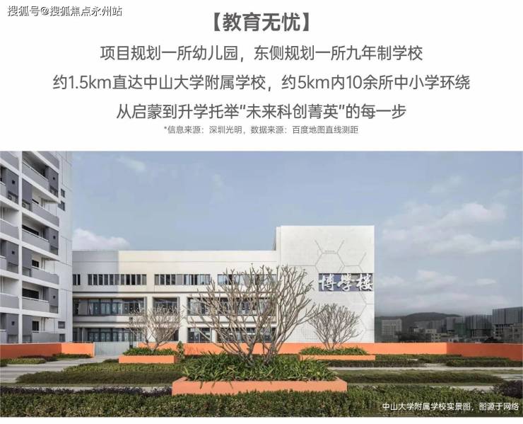 基础教育:中山大学深圳附属学校(小学+初中)为区域标杆校,首创午休床改革、开设 300 余门选修课,2025年9月学位充足;东侧规划36班九年制学校(建设中),预计2026年招生。