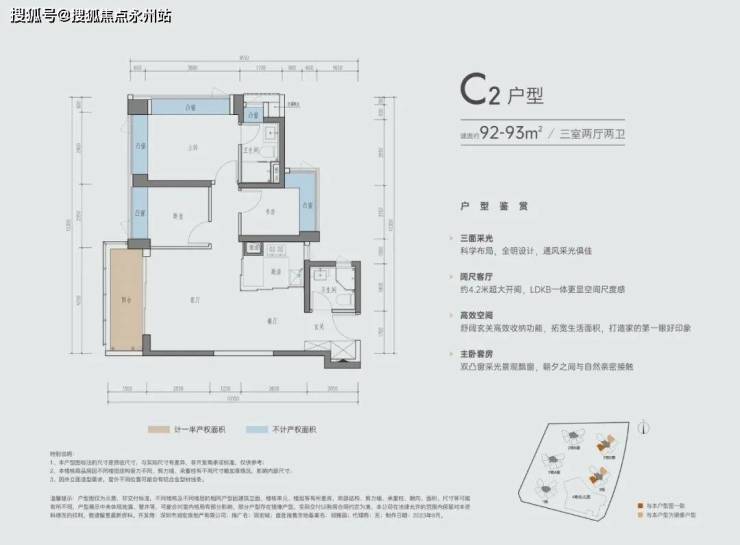 C-2户型 | 建面约92-93㎡三室两厅两卫