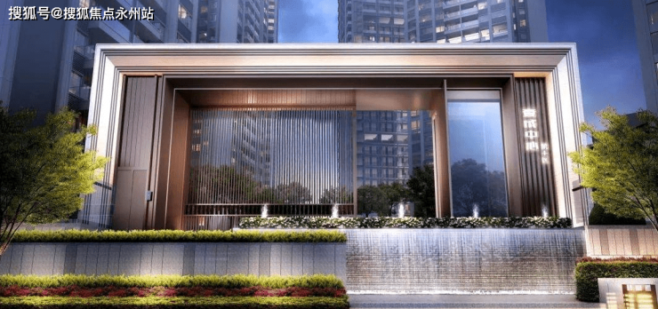 ——迭代美学沿袭豪宅美学基因,升级约3m高整板打造铝板立面,简约大气