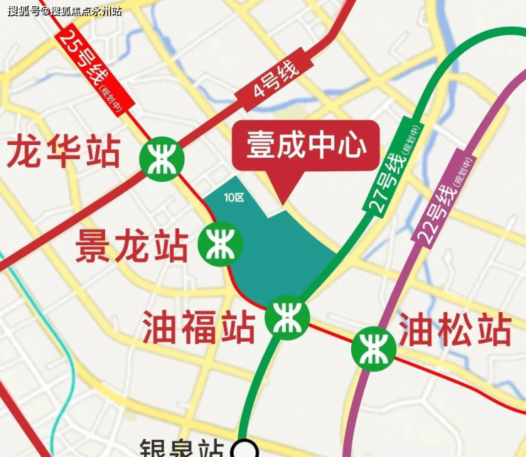4号线龙华站直线距离约500m,规划新增25/27/22号线3地铁