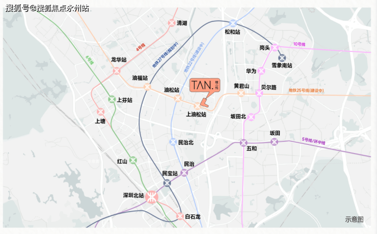 随着25号线、22号线的开工建设,檀悦未来的交通价值已然揭晓。25号线的“上油松站”地铁口就在项目前的路口,檀悦是妥妥的地铁口物业。同时周边还汇聚了其他7条地铁线,包括已经开通的地铁4号线、5号线、6号线、10号线,同样处于建设中的是22号线和33号深大城际,规划中的是27号线。