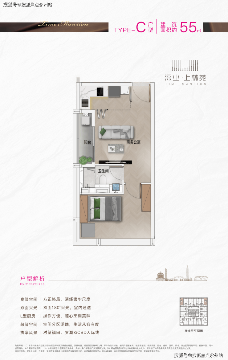产品形态:主推40-97㎡精装商务公寓,主力户型为40-50㎡小户型(占比80%),另有少量20-36层改善型套房,涵盖1-3房全生命周期需求。