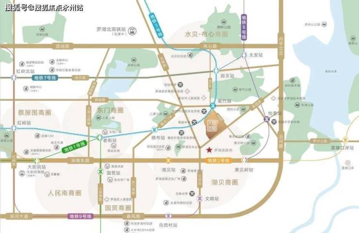 位于深圳繁华主轴,东门、湖贝、水贝-布心、国贸、蔡屋围、人民南六大商圈环绕,超百万高定商业mall一站畅享。