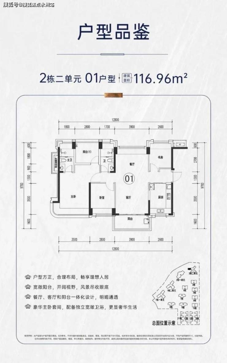 项目户型介绍:社区产品面积段包括112-116-120㎡4房2卫,195㎡4+1房4卫,本次推出116户型4房2卫
