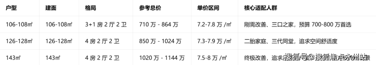 项目主打107-143㎡纯四房,覆盖刚需改善到高端改善全维度,户户朝南、全明通透,高得房率,梯户比合理,充分满足二胎家庭、三代同堂的居住需求