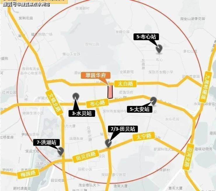 三条地铁线路,共计5个站点,分别是3号线水贝站,5号线太安站、布心站,7号线洪湖站,7号和3号线的换乘站田贝站。其中距离最近的是3号线水贝站,其次是5号线太安站和7号3号换乘车站,项目周边路网较为完善,布心路、文锦北路、沿河北路三条主干道,交通较为便利。