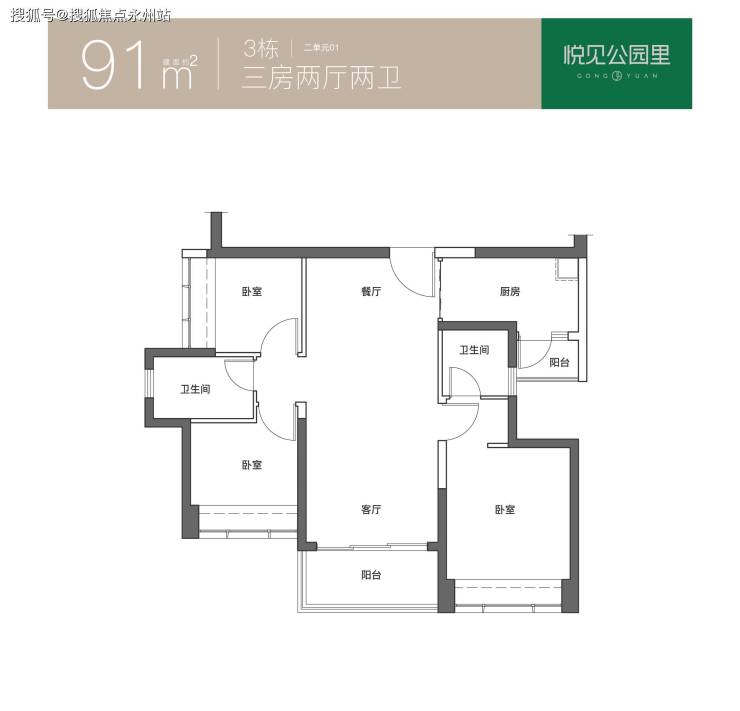 91㎡的3房2厅2卫,折后总价344-356万/套,单价3.78-3.91万/㎡