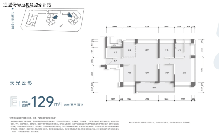 129平四房两厅两卫总价946万起,单价7.3万起