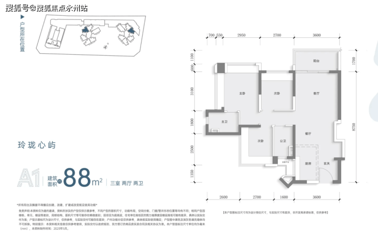 88平三房两卫1总价575万起,单价6.55万起