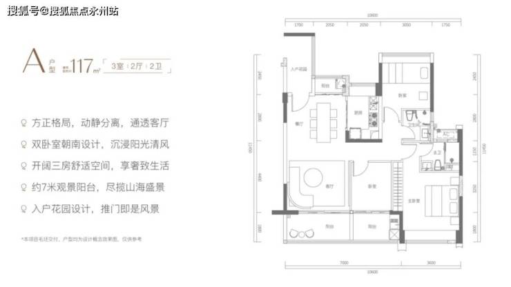 ▌建面约117㎡开阔三房: