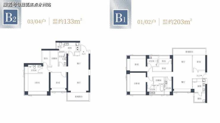 项目推出约123-203㎡的大宅户型,这些户型的共同特点是户型方正,动静分离,主卧带卫生间,空间利用率高,采光通风好。