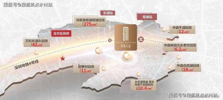 项目位于龙华区观湖街道平安路与景祥路交汇处东北侧,北侧紧靠着佳华领域,观澜作为龙华区府所在地,本案距其仅约3.5km,未来可第一时间政府红利资源倾斜。龙华12大产业区块,观澜独占9大板块,覆盖5200亿产值。龙华7大重点片区观澜占据其3,而本案处于观澜三大重点片区中心汇聚地,直属鹭湖中心城,未来将有无限的发展潜力。