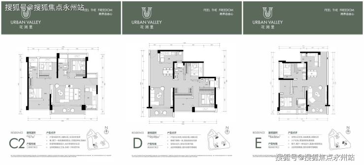 还有建面约78-79㎡竖厅“2+1”三房户型,可供选择。
