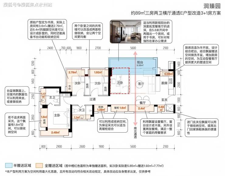 【润臻园】首开1栋26F小高层约89-108㎡的3-4房户型,实际使用率加赠送面积不同户型有约95-106%,在目前新规产品中,89E户型算是当下光明较高的存在,其它户型并没有突出点。