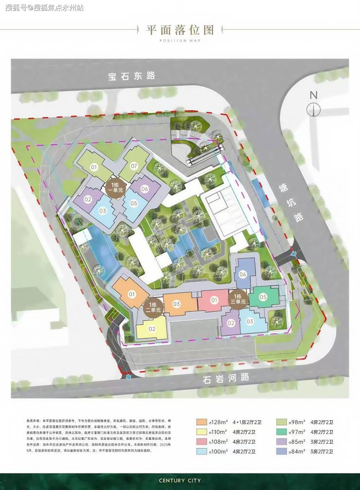 产品设计:主打84-128㎡的3-5房户型,涵盖84-85㎡三房两卫、97-98㎡四房两卫、108-110㎡四房两卫及128㎡的 4+1 房两卫,为石岩新规后首个新盘,得房率较高。