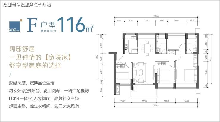 132㎡5房2卫:竖厅南北通,客厅开间3.8米主卧3.5米,对比116尺度基本一样,主要就是多了一间房。