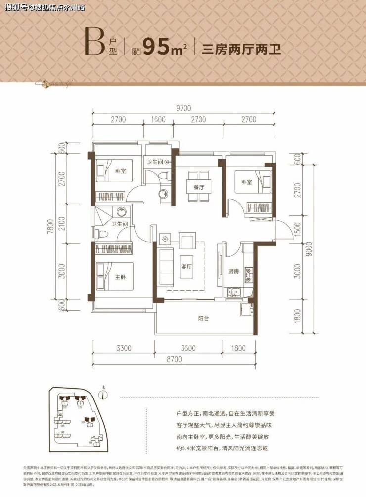 B户型:约95㎡3房2厅2卫【楼栋】1、2、3栋