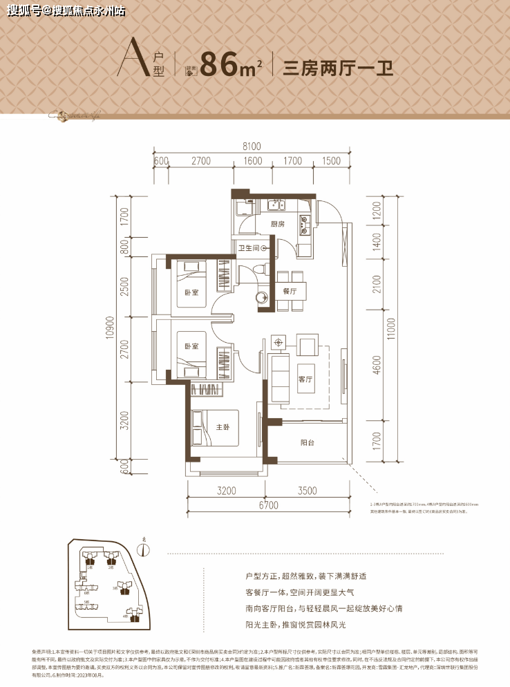 A户型:约86㎡3房2厅1卫【楼栋】1、2、3、4栋