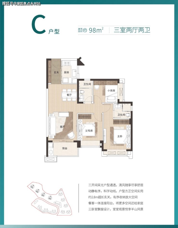 2.8m超长玄关,270度景观飘窗,明厨明卫