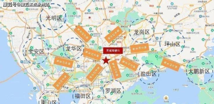 区域内里城、华润、华侨城、万科、招商等8大品牌开发商云集,超700万㎡旧改体量,里城玺樾山与约96万方招商三联旧改综合体项目一路之隔,西侧为约14万方奥园贵坑旧改项目,2KM内毗邻约110万方华润下李朗旧改项目,多个大型综合体环伺,左右皆繁华。