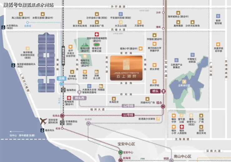 铁:广港深客运专线(规划中)、穗惠深城际铁路(福海西站直线距离约1500米、深圳机场站),延线可直达福田中心区。
