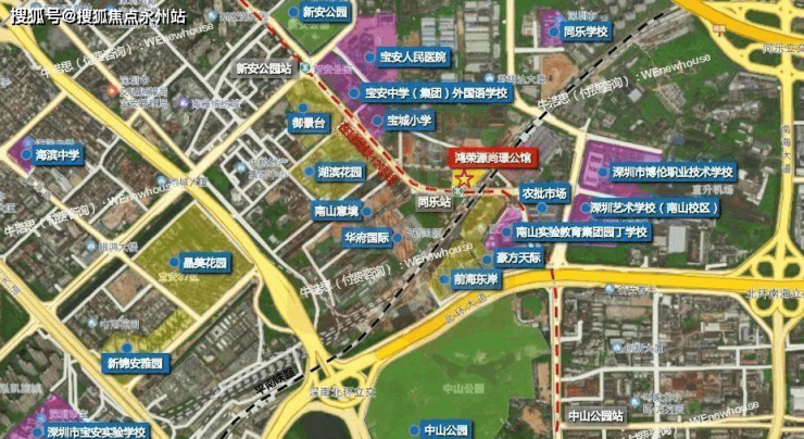 项目位于南山区南头街道同乐地区前进一路北侧,建设中的地铁12号线地铁口物业,附近有前海东岸、豪方天际等商品房小区,稍远处的南山意境和华府国际小区则是军产房。