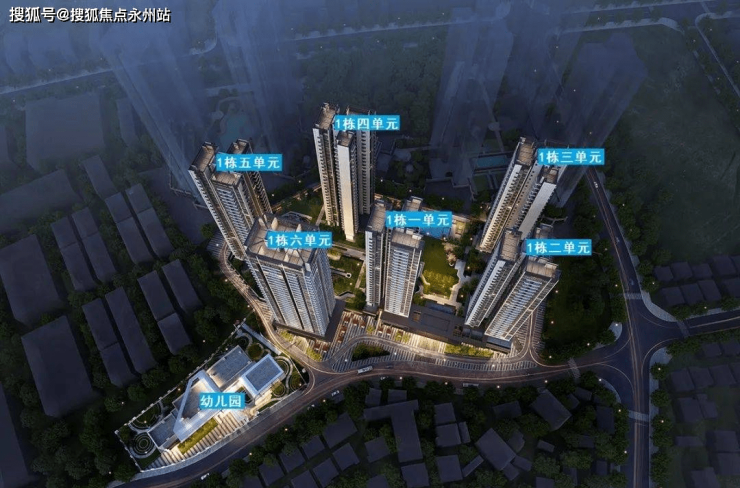 由于1、4、5单元交错分布,从视觉呈现上,项目的居住密度偏大,而实际上,项目的绿化率有40%,还有游泳池、沙地乐园的设施。
