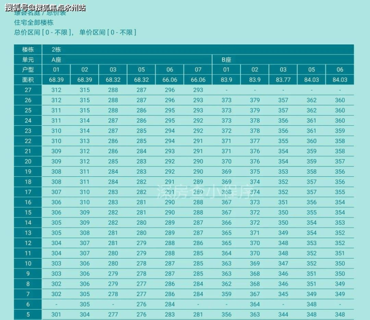 部分房源备案价格展示