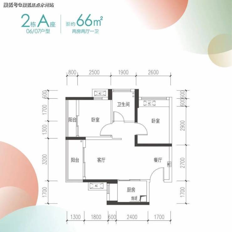 建面约66㎡2房2厅1卫